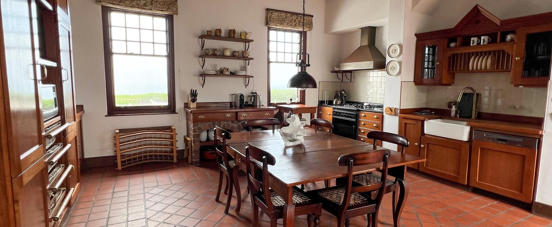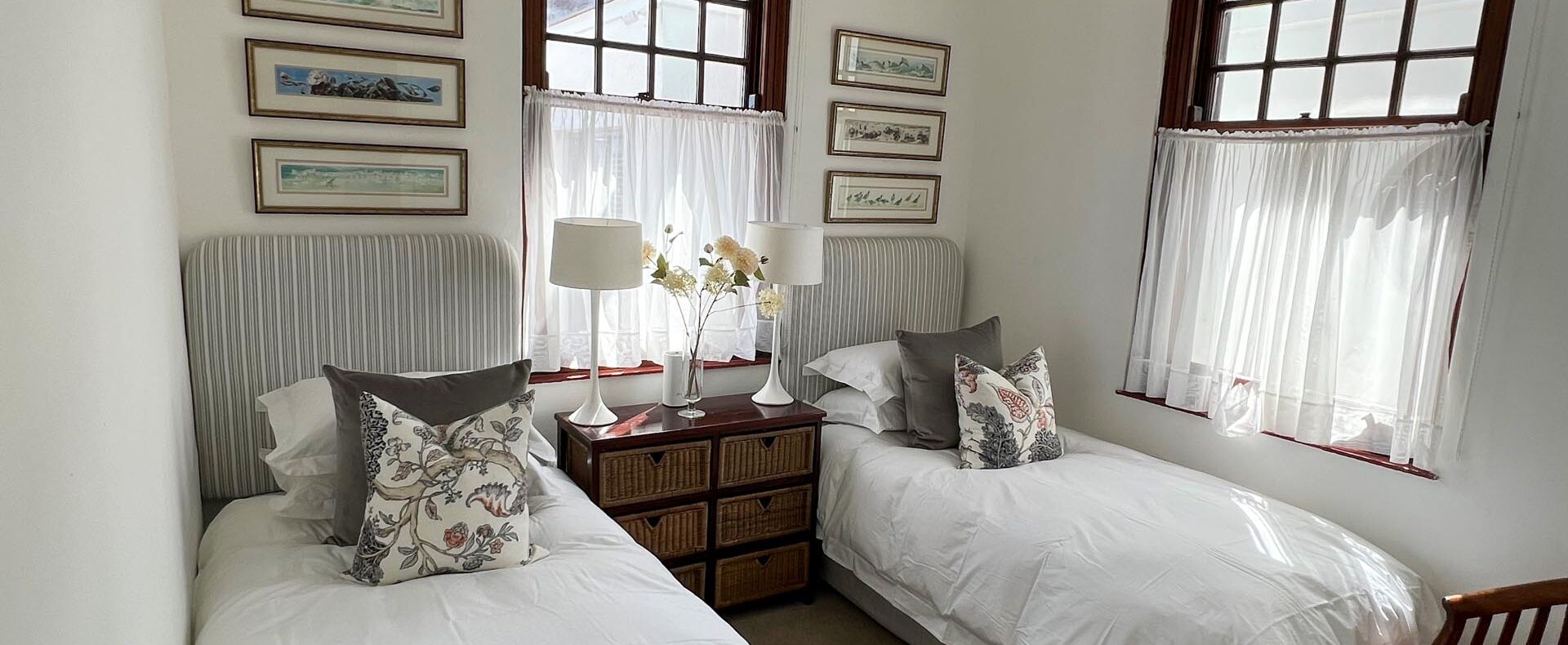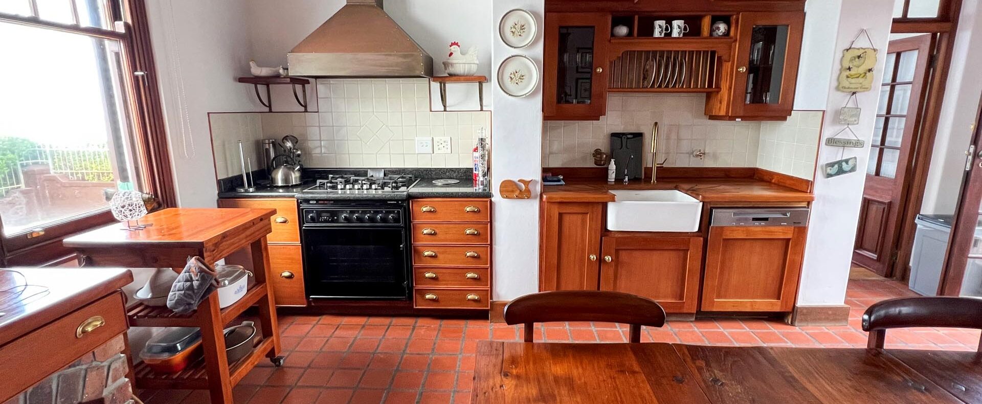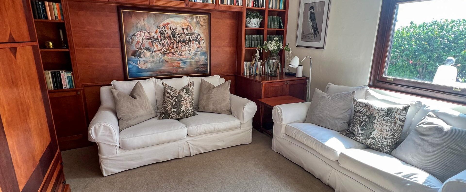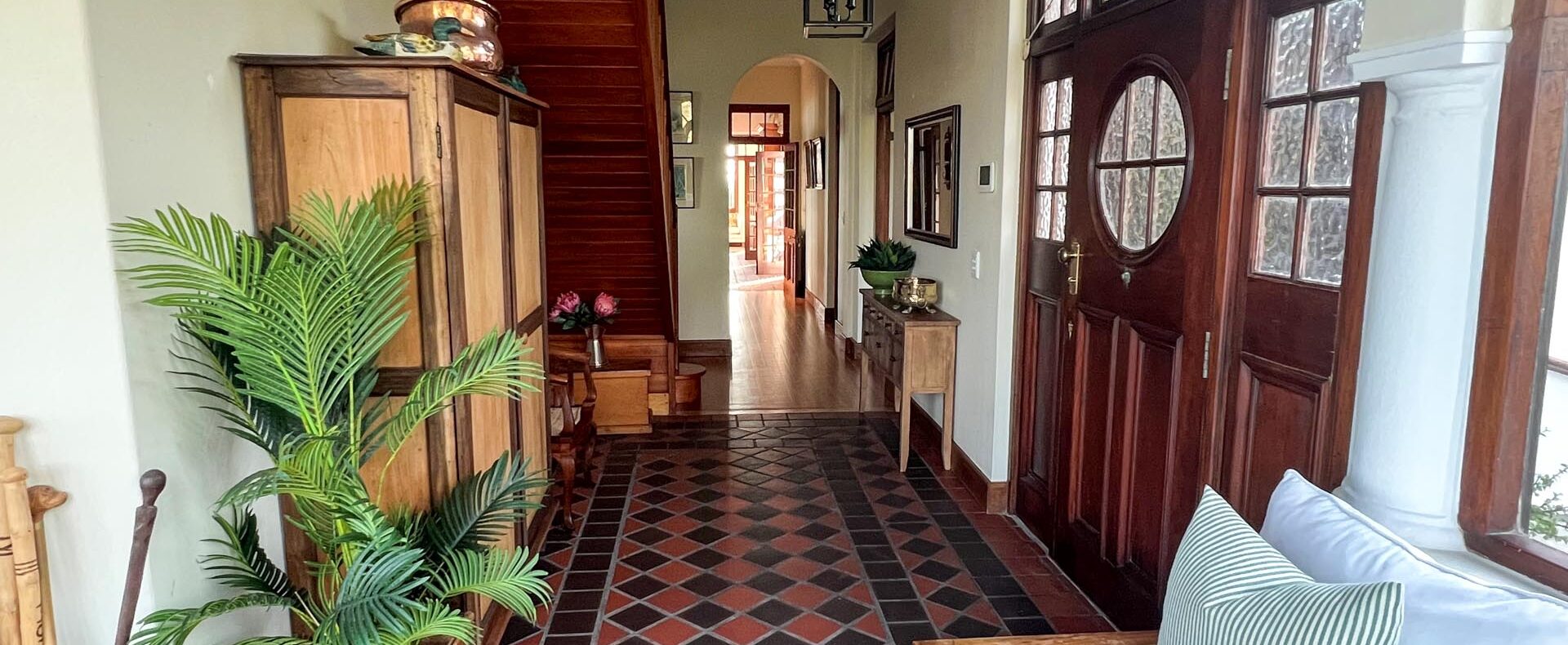 The house is furnished with an eclectic mix of English antiques and Africana. This is a well-loved family home with desired pieces handed down from family or collected personally over the years. The atmosphere is relaxing, and the house has the charm of yesteryear when the pace of life was much slower. It is a place where you can sit back and enjoy the surrounding beauty of mountain, sea and fynbos and learn to breathe again.