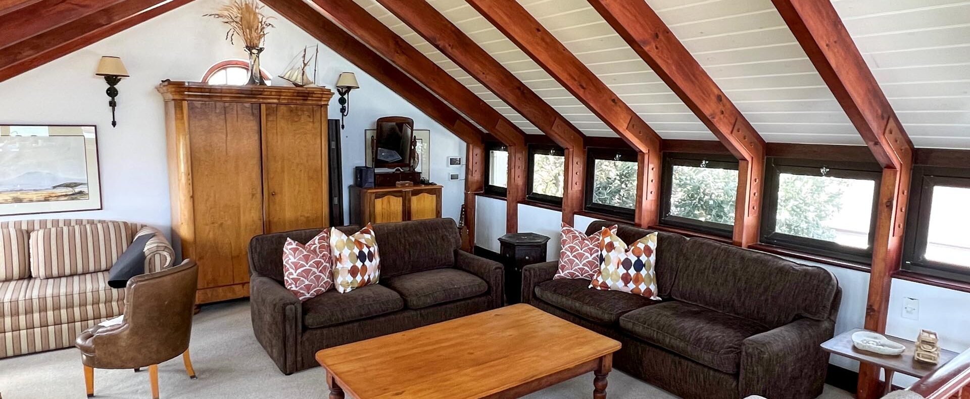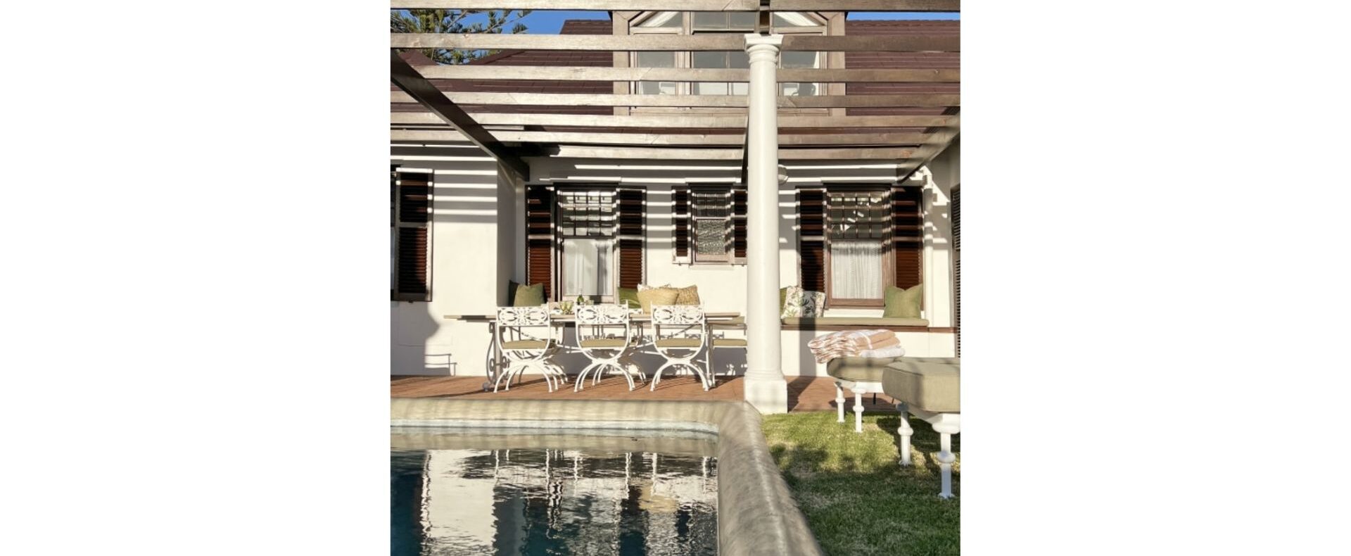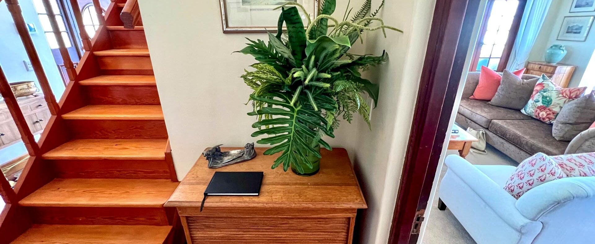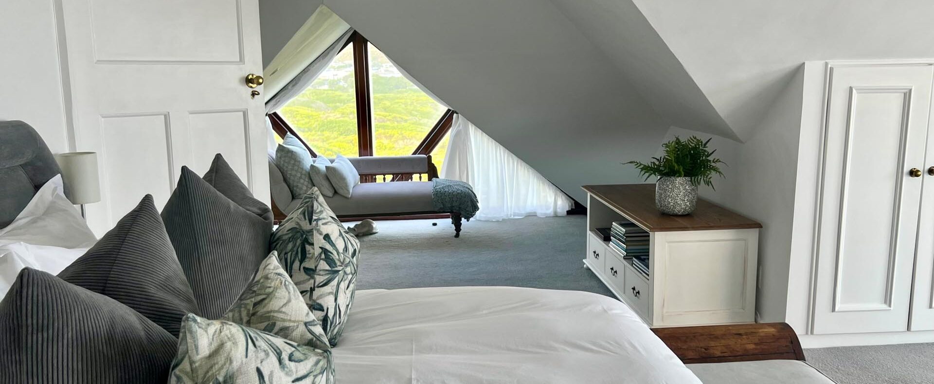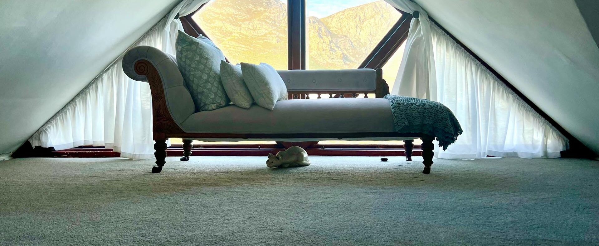 The house is furnished with an eclectic mix of English antiques and Africana. This is a well-loved family home with desired pieces handed down from family or collected personally over the years. The atmosphere is relaxing, and the house has the charm of yesteryear when the pace of life was much slower. It is a place where you can sit back and enjoy the surrounding beauty of mountain, sea and fynbos and learn to breathe again.