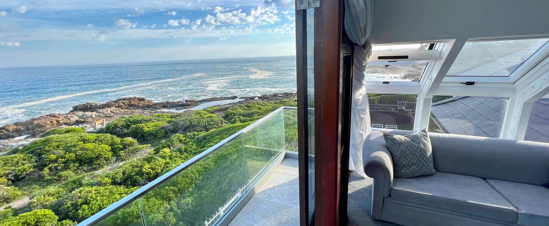This iconic heritage house stands as a gracious sentinel on the Kwaaiwater promontory, overlooking the waters of Walker Bay. Built in the early 1900’s 4 on Kwaaiwater is one of the oldest houses in Hermanus and is listed by the National Heritage House Commission as a house of significance. Fronting on the sea and cliff path at a point called “Die Neus”, the house is bordered on both east and west by pockets of the Fernkloof Nature Reserve. During the whale season, you can whale watch from the house. A gate from the front garden gives direct access to the renowned 13 km cliff path. The property is situated at the end of a quiet cul de sac in Kwaaiwater, one of the most desirable suburbs in Hermanus. The house consist of six bedrooms and five bathrooms with loads of additionals and can accomodate up to 11 persons.