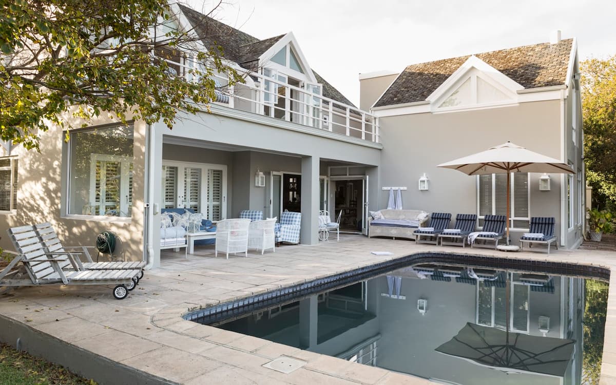 This wonderful, private five bedroom holiday home is designed with ultimate relaxation in mind.  It is filled with charm and soul with elegant finishing and comfortable familiarity.  The location is in the centre of town within walking distance from shops, restaurants and the famous Cliff Path. It has a well-designed kitchen that opens onto an informal dining area and large family lounge. The beautiful pool area is situated outside the dining room and leads into the magnificent garden. Secure off street parking available. WiFi and DSTV also available.
